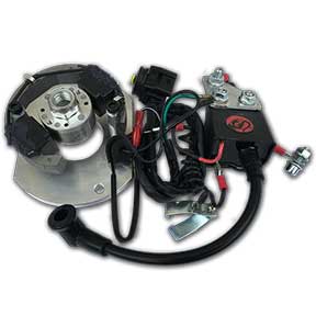 Black Dragon high performance PW50 ignition kit is designed for maximum power output. The PW50 will feel more responsive right off an idle all the way through the powerband. Featuring a special lightweight flywheel to reduce rotating mass on the engine crankshaft. This allows the engine to reach higher RPM more quickly. The Black Dragon ignition kit also has a higher spark output than the stock PW50 ignition for increased power.